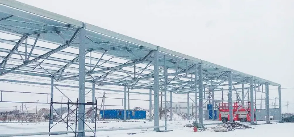 Усиленный стальной каркас рассчитан на высокие статические и динамические нагрузки, включая размещение тяжёлого складского оборудования и стеллажных систем. Срок службы превышает 50 лет. Конструкция выдерживает экстремальные климатические условия в Норильске, включая снеговые и ветровые нагрузки.